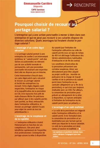 “L’entreprise CAPE Services s’est fixé pour ligne de conduite de faire travailler un large éventail de professions autorisées en portage partout en France tout en favorisant un discours clair et transparent.”